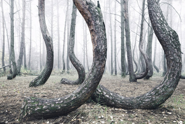 در جنگل های منطقه «پامرینیا غرب» در لهستان تمام درخت ها در نزدیکی ریشه به شکل یک قلاب خم شده اند و پدیده عجیب و غریبی به نام «جنگل کج» را تشکل داده اند.