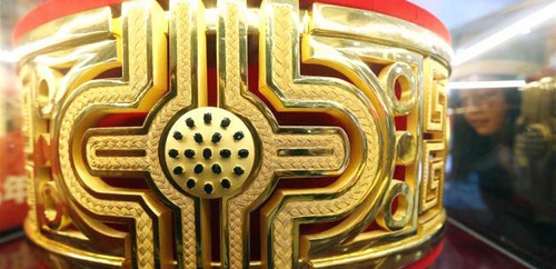 «جیانگ سو» چین، به نمایش درآمد. بر اساس گزارش شین هوا، وزن این حلقه 82.2 کیلوگرم و دارای خلوص 99.99 درصد است.بر اساس تحقیقات دانشمندان، طلا روند فعالیت ارگانیسم بدن را تسریع میکند، موجب بهبود بیماریهای قلبی میشود و فشار خون را پائین میآورد و نقره فشار خون را بالا میبرد؛