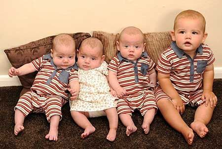 یک مادر انگلیسی در یک سال دو بار زایمان نموده و حال صاحب 4 نوزاد است.