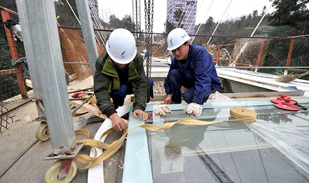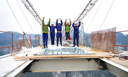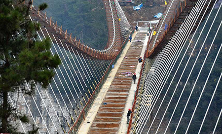 تصاویری از مراحل ساخت طویل ترین پل شیشهای دنیا