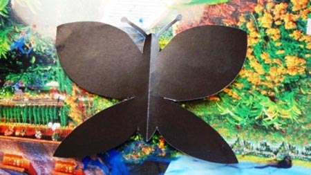 مقوا را باز میکنیم ..حالا یک پروانه کامل داریم.