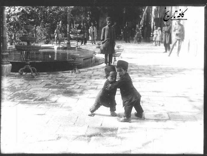 آدمهای کوتوله در دوره قاجاریه در حال گرفتن کشتی(در دوره مظفرالدین شاه)