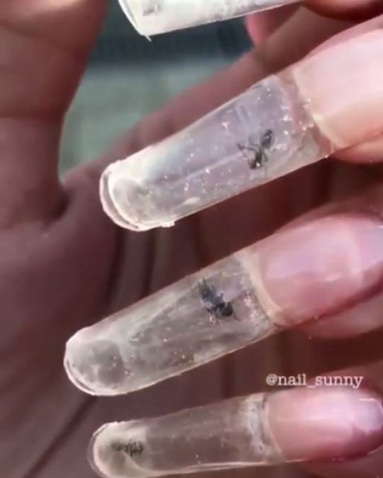 این مورچه ها زنده در تمام مدت درون محفظه ناخنی که مانیکور شده بالا و پایین می روند و صحنه ای زشت و منزجر کننده را بوجود می آورند.