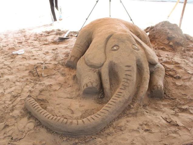 هنرمندان مجسمهساز تلاش میکنند با اتکا به تواناییهای خود مجسمههای شنی زیبایی را تولید کنند.