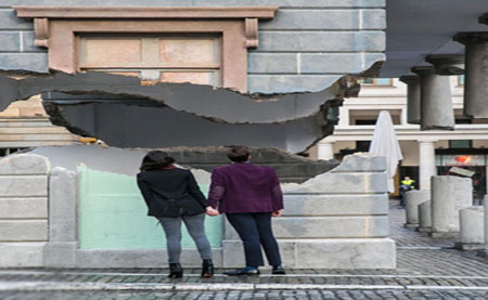" الکس چینک" عجیب ترین خانه ای که تاکنون دیده اید را در لندن به نمایش گذاشته است. خانه ای که به طور باورنکردنی که در هوا معلق است. این خانه ی معلق یا به عبارتی این سازه هنری 20 متری در لندن، جدید ترین اثر اوست که با استفاده از خطای دید طراحی و اجرا شده است. تمامی رهگذران با دیدن این اثر هنری شوکه میشوند. خانه ای که از وسط به دو نیم شده و نیمه بالایی از هر زاویه در هوا معلق به نظر میرسد.