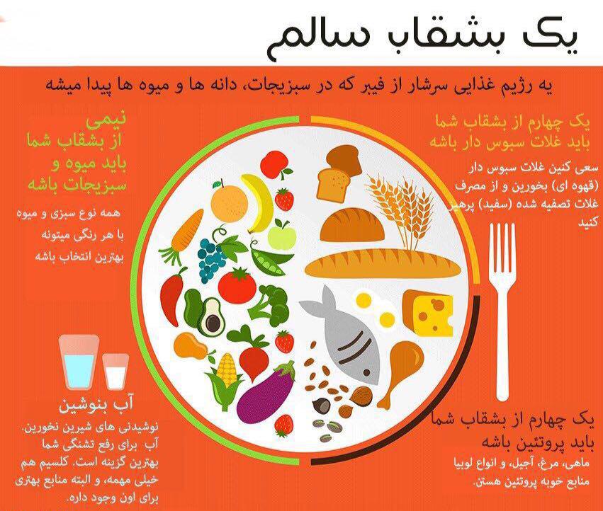 وی توصیه کرد : نکته حائز اهمیت این است در وعده های غذایی مان از بشقاب سالم استفاده کنیم . بشقاب سالم بشقابی است که نیمی از آن را با سبزیجات و میوهها پر کنیم سپس نیمه دیگر آن را به پروتئین کمچرب و غلات اختصاص دهیم و سعی کنیم غلات اندکی بیش از پروتئین باشد. ما باید در طول روز 4وعده غذا بخوریم اما این 4 وعده قانون خاص خود را دارد و متشکل است نصف بشقاب میوه و سبزیجات ، یک چهارم غلات و یک چهارم دیگر پروتئین . بهتر است این پروتئین بدون چربی باشد و خوب است از سویا ، قارچ ،ماهی و مرغ بیشتر استفاده شود و مصرف گوشت قرمز را به حداقل برسانند و نکته بسیار مهم این است که بشقاب انتخابی ما یک بشقاب میوه خوری برای غذا خوردن باشد و از بشقاب های بزرگ به هیچ وجه استفاده نشود .