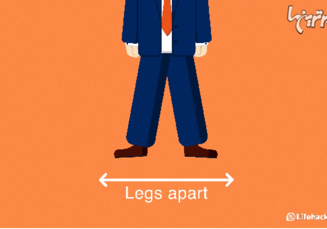زمانی که شما پاهایتان را باز می کنید و وزن تان را به طور مساوی به روی دو پا می اندازید، اینطور به نظر می رسد که می خواهید قدرت تان را نشان دهید. شما می خواهید این پیام را به دیگران بدهید که به اندازه کافی قدرت دارید و می توانید از پس مسئولیت تان در یک تیم برآیید.