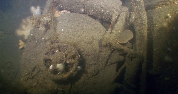 بخش جلوی این زیردریایی به طور غیرعادی در شنهای کف دریا دفن شده است؛ در حالی که بخش عقب آن نزدیک به 20 متر از بستر دریا بالاتر است.