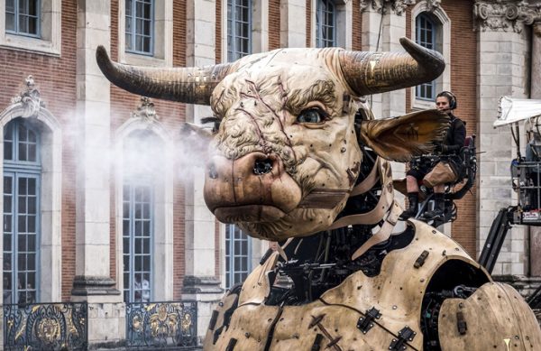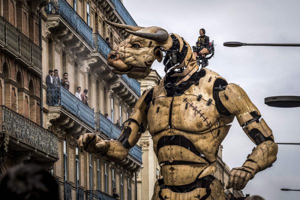 در چهار روز نخست ماه نوامبر خیابان های شهر تولوز فرانسه تبدیل به مکان نمایشی برای ربات های غول پیکری به نام های آریان و استریون می شود. آستریون شخصیتی است با بدن انسان و سر گاو یکی از شخصیت های داستان های اسطوره ای فرانسه که به خاطر مجازات خدای دریا به این شکل به دنیا آمده است و آریان نیز یکی دیگر از شخصیت های اسطوره ای است به شکل عنکبوت. این ربات های غول پیکر توسط کمپانی تئاتر خیابانی "La Machine's multiday show" ساخته شده و در خیابان های شهر به نمایش گذاشته می شوند. در زیر تصاویری از این نمایش شگفت انگیز که بیش از ۶۰۰ هزار تماشاچی دارد و در خیابان های شهر تولوز اجرا شده است را با هم ببینیم.