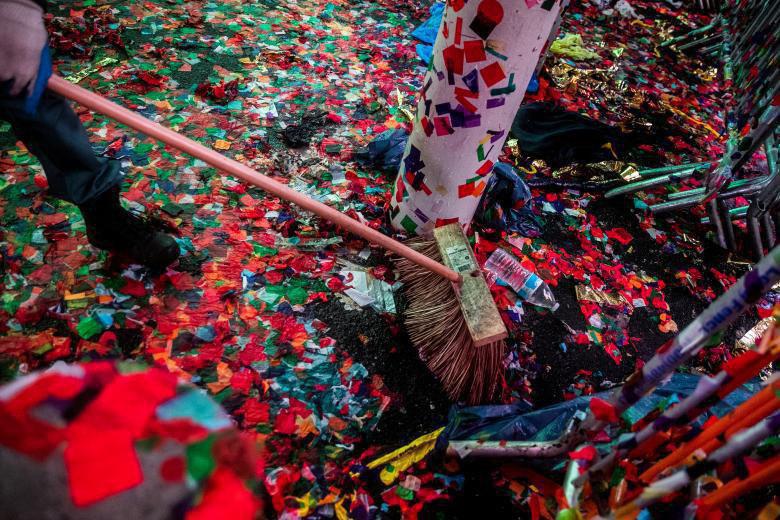 پاکسازی میدان تایمز نیویورک پس از جشن سال نو را در این تصویر ببینید.
