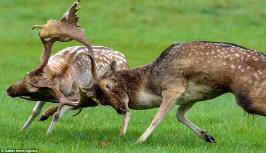 «استیو بل» عکاس 57 ساله در حین تماشای گوزن ها در پارک «هالکام » نورفولک جدال این حیوانات را قدرت نمایی این حیوانات برای جفت یابی و مشخص کردند قلمروشان می داند.