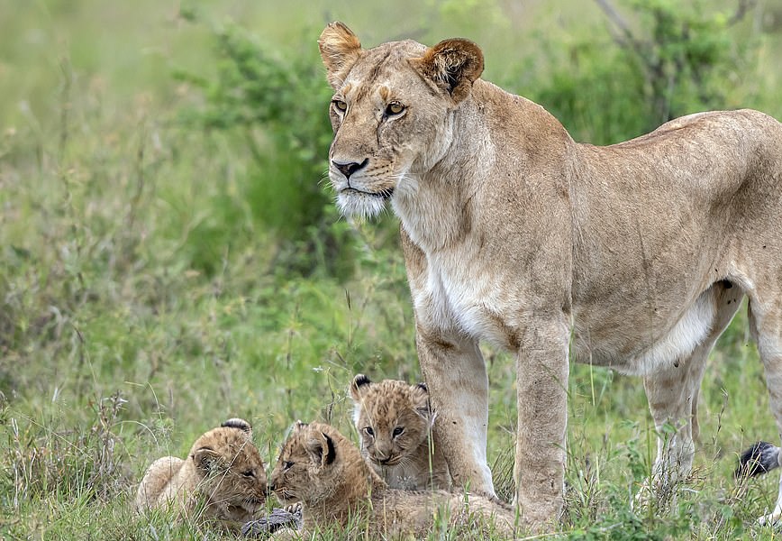 یکی از سه توله شیر تازه متولد شده نسبت به دو توله دیگر بازیگوش تر به نظر میرسد او دائما با دم مادر خود بازی میکند و حتی آن را گاز میگیرد.