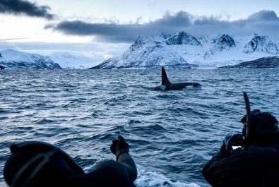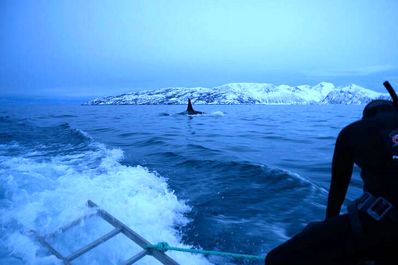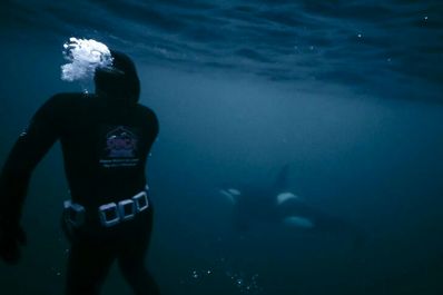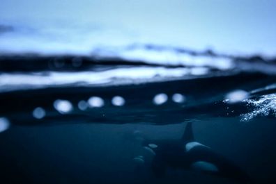 اولیویر مورین عکاس فرانسوی با سفر به شمال نروژ به شنا با نهنگهای قاتل در آبهای سرد اقیانوس پرداخته است.