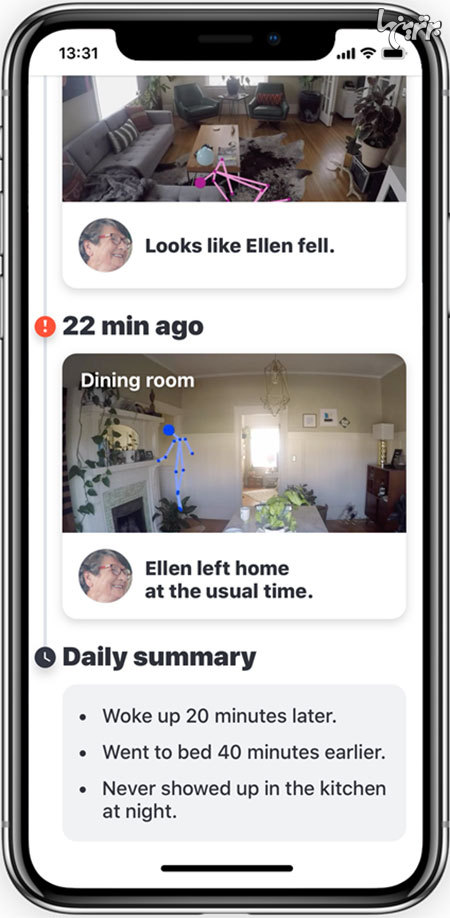 یک استارتاپ جدید، یک سیستم امنیتی جدید برای حذف مقداری از اضطراب و نگرانی ما در مورد بزرگسالانمان فیلمی لحظه به لحظه از زندگی آنها در منزل در اختیار ما قرار میدهد. این سیستم از میکروفون و سنسورهایی دیداری استفاده میکند تا حرکات این شخص را شناسایی و ردیابی کند و به مراقبینشان امکان مراقبتی زنده و بیست و چهار ساعته بدهد. در این سیستم قابلیت شناسایی خطر و فرستادن هشدار نیز تعبیه شده است. این اولین سیستم نظارت خانگی هوشمندیست که از هوش مصنوعی استفاده میکند و به جای چهره، حرکات و الگوهای رفتاری را بررسی میکند و نظارت از راه دور ) لانگ دیستنس ( را برای مراقبین امکانپذیر میسازد.