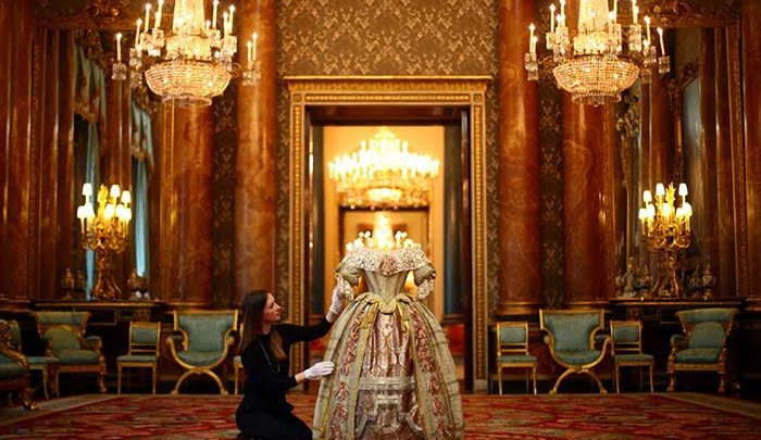 آماده سازی لباس ملکه ویکتوریا پیش از نشست مطبوعاتی برای افتتاحیه تابستانی کاخ باکینگهام و بازدید عمومی بریتانیا است.
