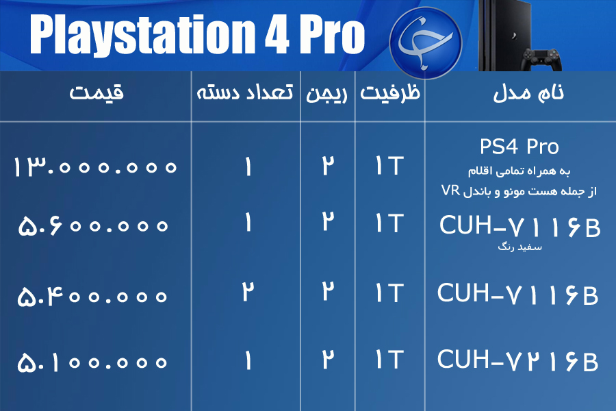 همچنین این شرکت چند ماه پیش یک مدل خاص با نام پلیاستیشن کلاسیک را به بازار عرضه کرد که خریداران میتوانند با آن بازیهای نوستالوژیک پلیاستیشن ۱ را بازی کنند. این مدل یک گیگابایت حافظه رم و ۱۶ گیگابایت حافظه داخلی دارد و ۲۰ بازی ذخیره شده قابل اجرا درون آن موجود است. در ادامه آخرین قیمت کنسولها و لوازم جانبی شرکت سونی در بازار را مشاهده میکنید:
