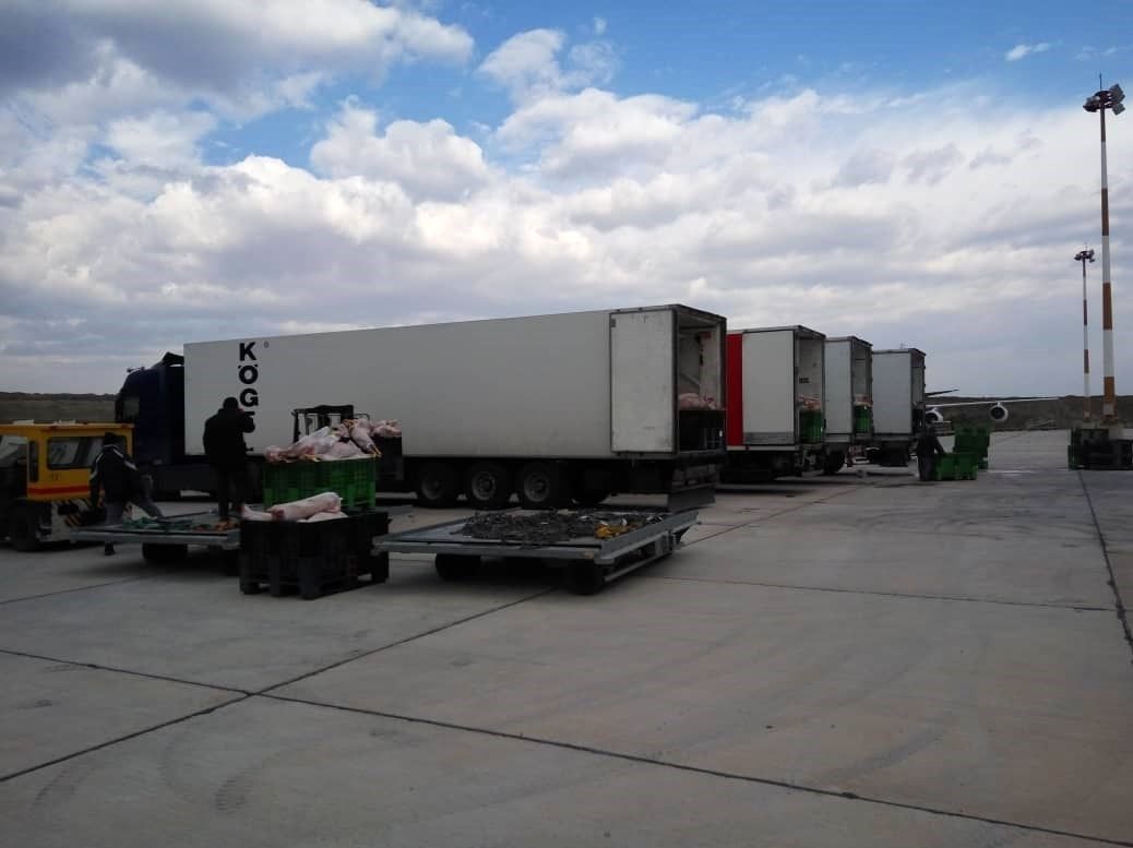 یک محموله 51 تنی گوشت گرم توسط هواپیمایی بوئینگ 747 هواپیمایی جمهوری اسلامی ایران (هما) از فرودگاه "تاراز" قزاقستان به فرودگاه پیام منتقل شد. همچنین محموله 41 تنی دیگر گوشت گرم با همین هواپیمایی ایران‌ایر از فرودگاه شینکنت قزاقستان به فرودگاه پیام منتقل شد.