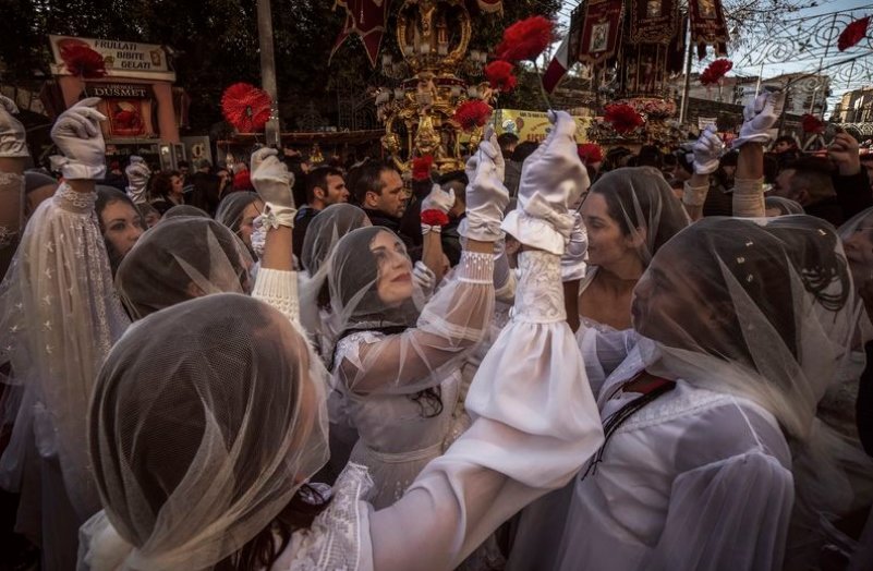 زنان با پوشیدن لباس عروس، روز سنت آگاتا در سیسیل ایتالیا را جشن گرفتند. Antonella Platania، عکاس، میگوید: آنها گلهای قرمز در دست دارند که معنای قوی عشق میدهد.