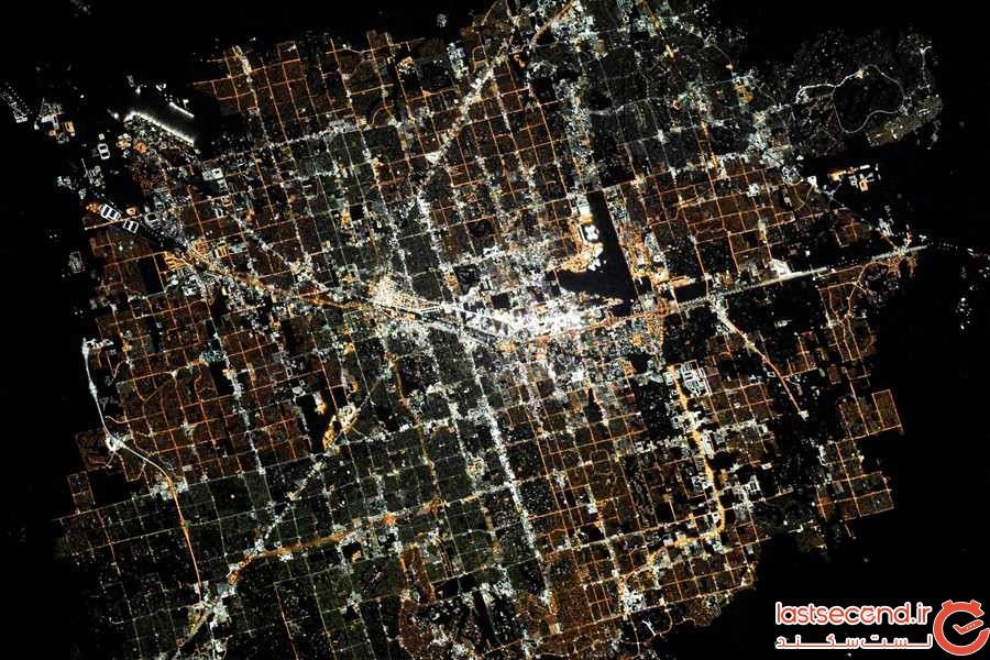 ابَر شهرهای ایالات متحده، از ارتفاع ۴۰۰ کیلومتری اینطور بهنظر میرسند.