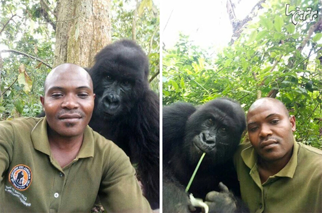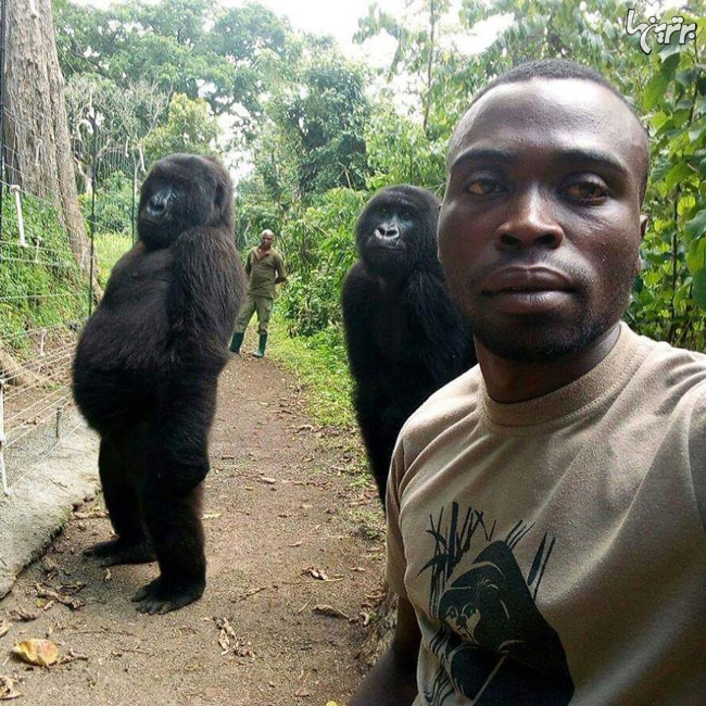 ژست گرفتن گوریلها برای سلفی در کنگو