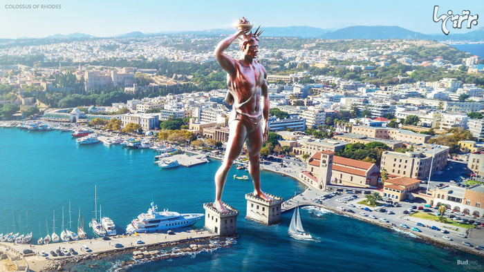 این تندیس باشکوه از هلیوس، خدای خورشید یونانی، ۳۱.۷ متر ارتفاع داشته و در بندر ماندراکی در رودس و بر روی پایهای از سنگ مرمر به ارتفاع ۱۵ متر ساخته شده بوده و کشتیها از بین پاهای آن عبور میکرده اند. این مجسمه نماد آزادی از یک دوره طولانی محاصره رودس بوده و حتی از بقایای ذوب شده ابزارهای جنگی قبرس تازه شکست خورده ساخته شده است. غول رودس، نماد وحدت بوده و ساخت و ساز آن از سال ۳۰۴ قبل از میلاد آغاز شده و دوازده سال طول کشیده است.