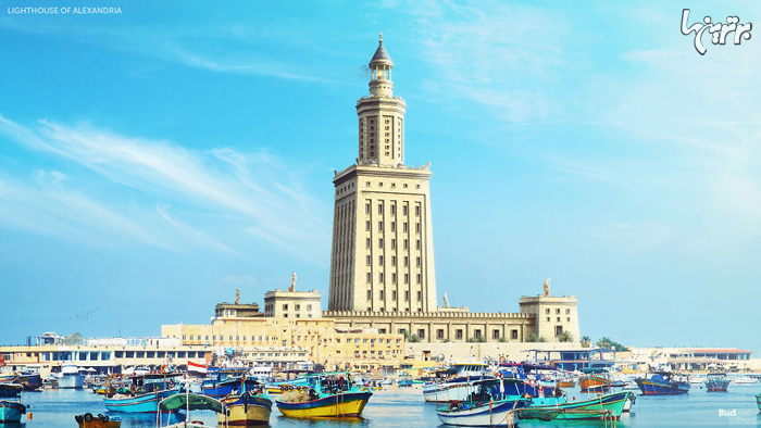 این ساختمان زیبای ۱۰۰ متری تا قرنها سومین ساختمان بلند جهان بعد از اهرام جیزه بود. فانوس اسکندریه سه طبقه داشت: یک طبقه مربعی در پایین، یک برج هشت وجهی در وسط و یک طبقه استوانهای در بالا که با آتش روشن میشد مردان دریا را هدایت میکرد، اما در اثر زلزلههای قرن ۱۲ تا ۱۵ به تدریج از بین رفت و توسط سلطان مملوک به یک قلعه قرون وسطایی تبدیل شد.