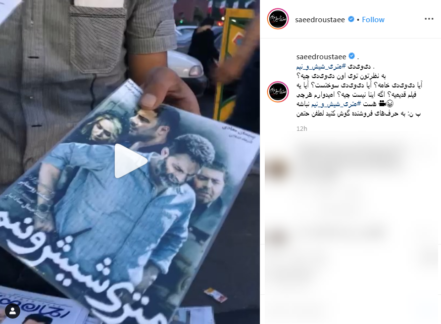 سعید روستایی کارگردان فیلم سینمایی متری شش و نیم و ابد و یک روز با انتشار ویدئویی در صفحه اینستاگرام خود از فروش دیویدیهای غیرقانونی جدیدترین فیلمش توسط یک دستفروش در خیابان خبر داد.