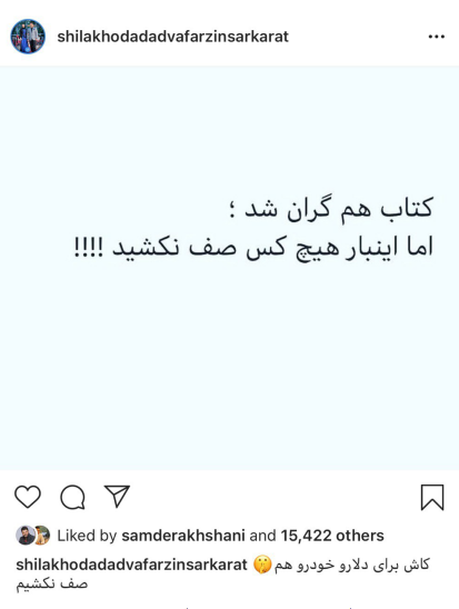 او با انتشار عکس نوشته ای نوشت: «کتاب هم گران شد؛ اما اینبار هیچ کس صف نکشید»