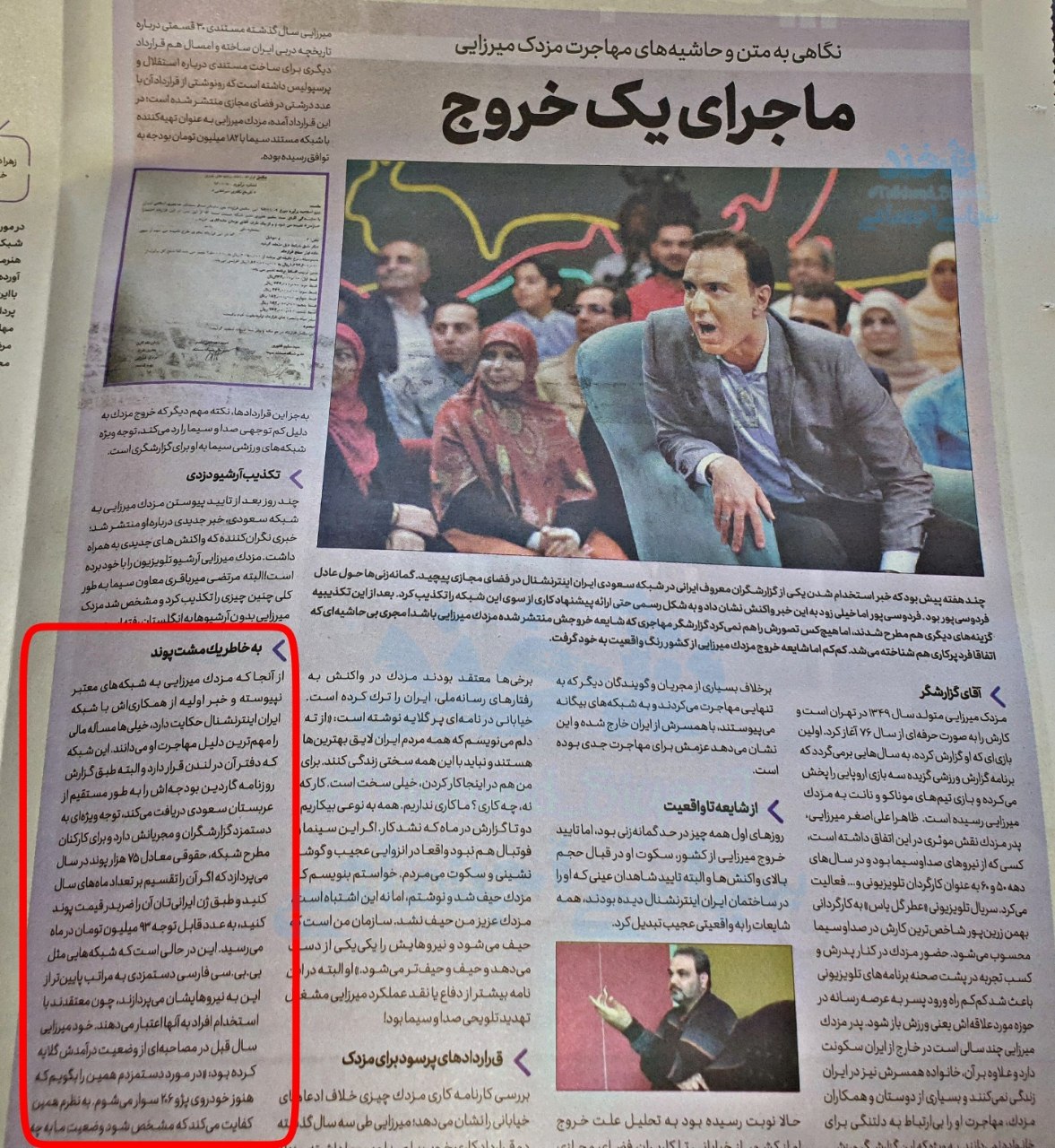 روزنامه جام جم وابسته به صداوسیما، حقوق مزدک میرزایی در شبکه اینترنشنال را ماهیانه ۹۳میلیون تومان تخمین زده است