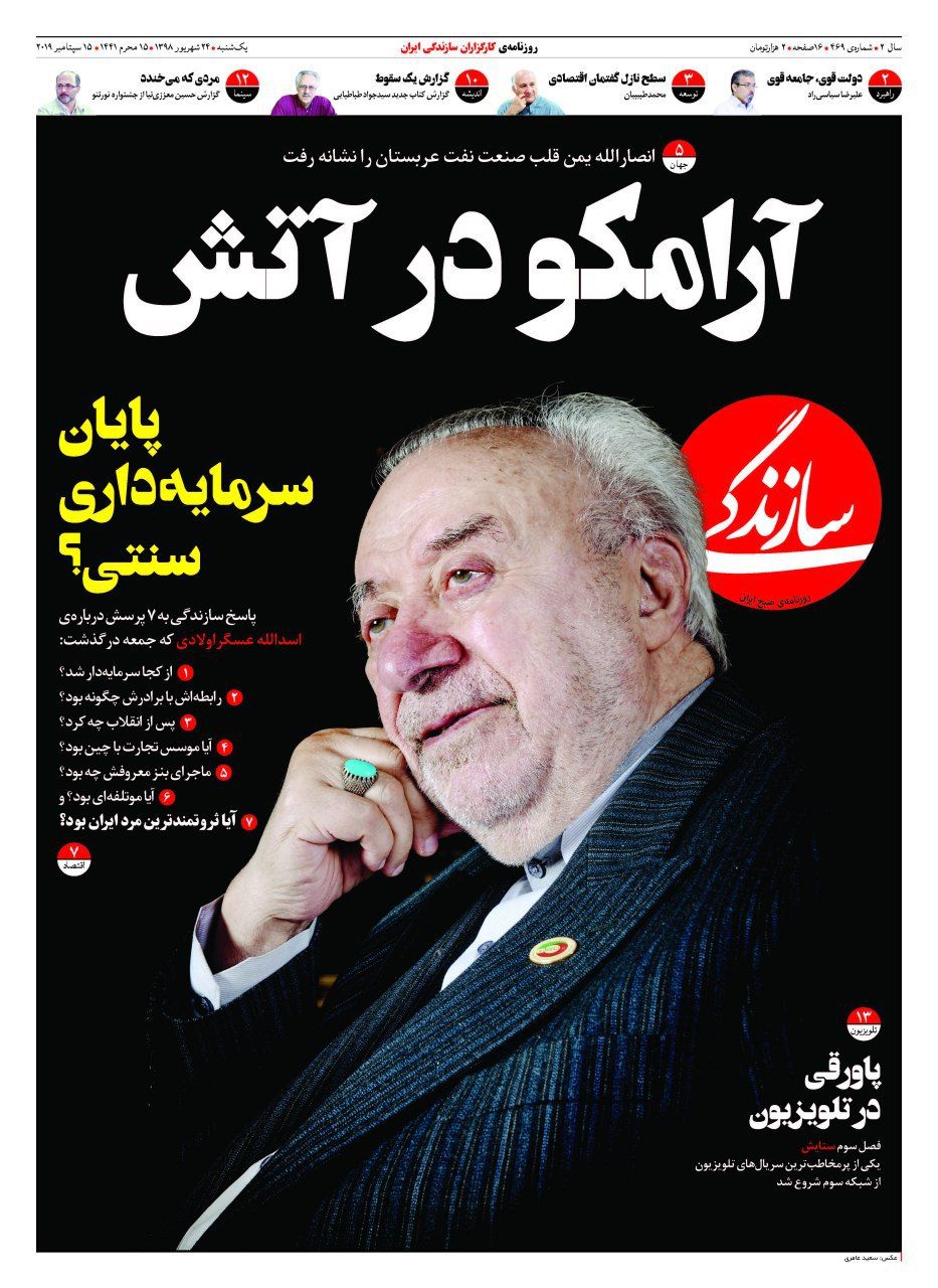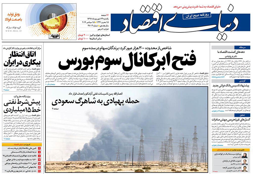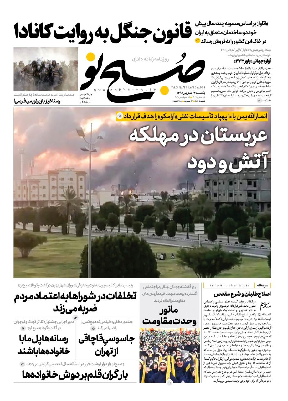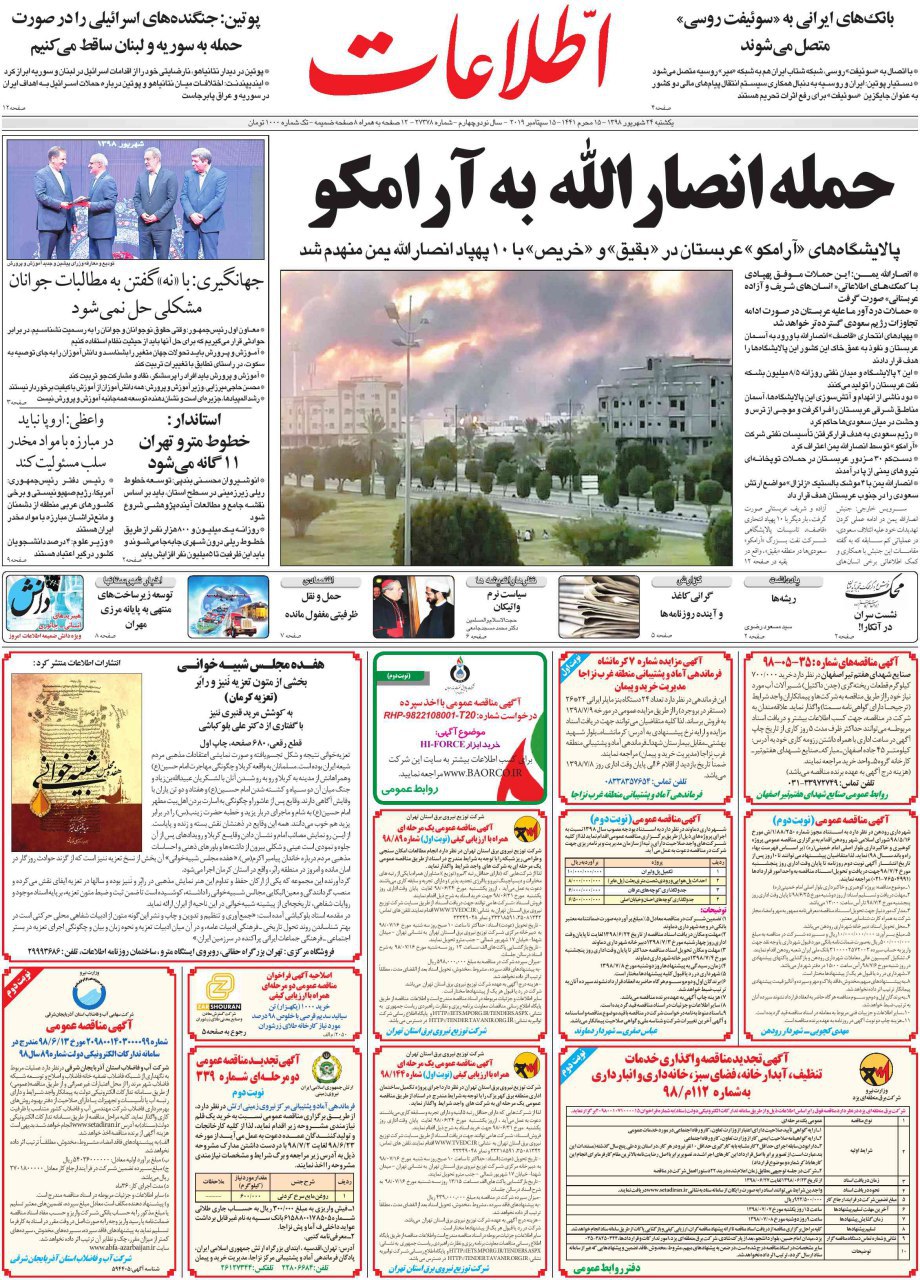 در ادامه، صفحه یک برخی از مطبوعات شناخته شده ایران را میبینید که حمله به آرامکو را برجسته کرده اند.