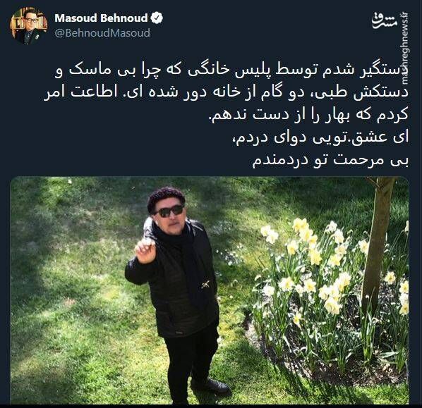مسعود بهنود روزنامهنگار مقیم لندن از دستگیری خودش به دلیل رعایت نکردن توصیههای بهداشتی خبر داد.