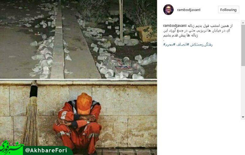 بازیگر و کارگردان سینما و تلویزیون از شهروندان خواست از ریختن زباله پرهیز کنند و حتی در جمع آوری آن در این ایام نیز پبش قدم باشند.