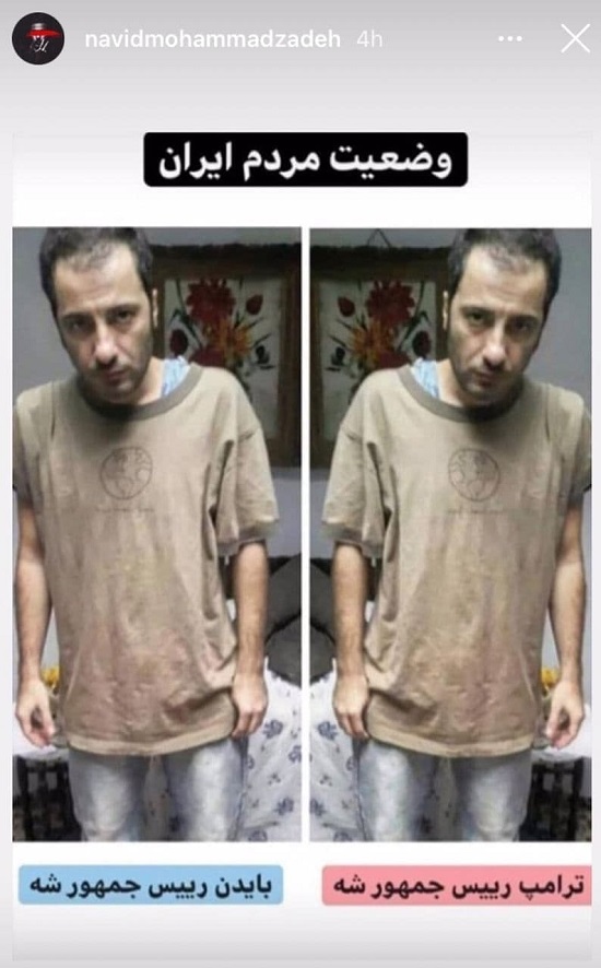 استوری نوید محمدزاده درباره‌ "وضعیت مردم ایران" در دو صورتِ انتخاب ترامپ یا بایدن