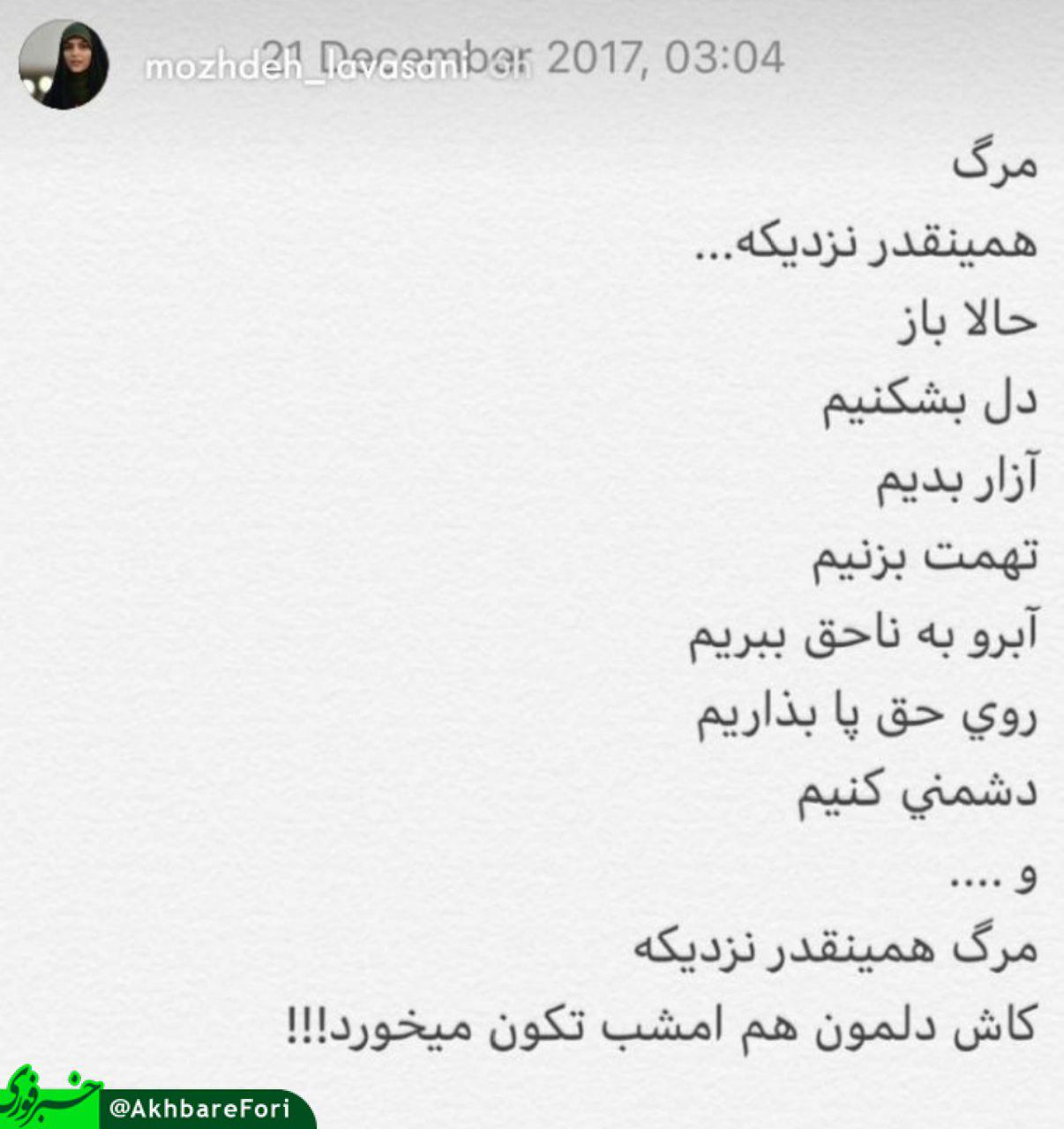 مژده لواسانی مجری، سردبیر، نویسنده، کارگردان و گویندهٔ کشورمان نسبت به زلزله دیشب تهران متنی را منتشر کرد.