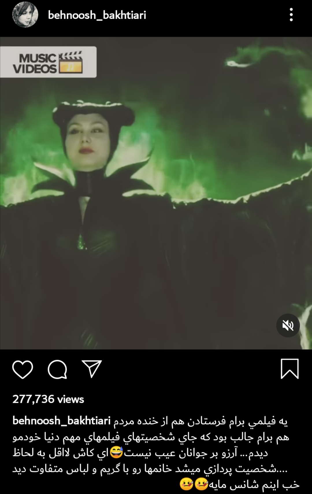بهنوش بختیاری، بازیگر سینما با انتشار یک فیلم که از فن آوری جدید تدوین استفاده کرده، خود را در نقش بازیگران هالیوودی تصور کرده است.