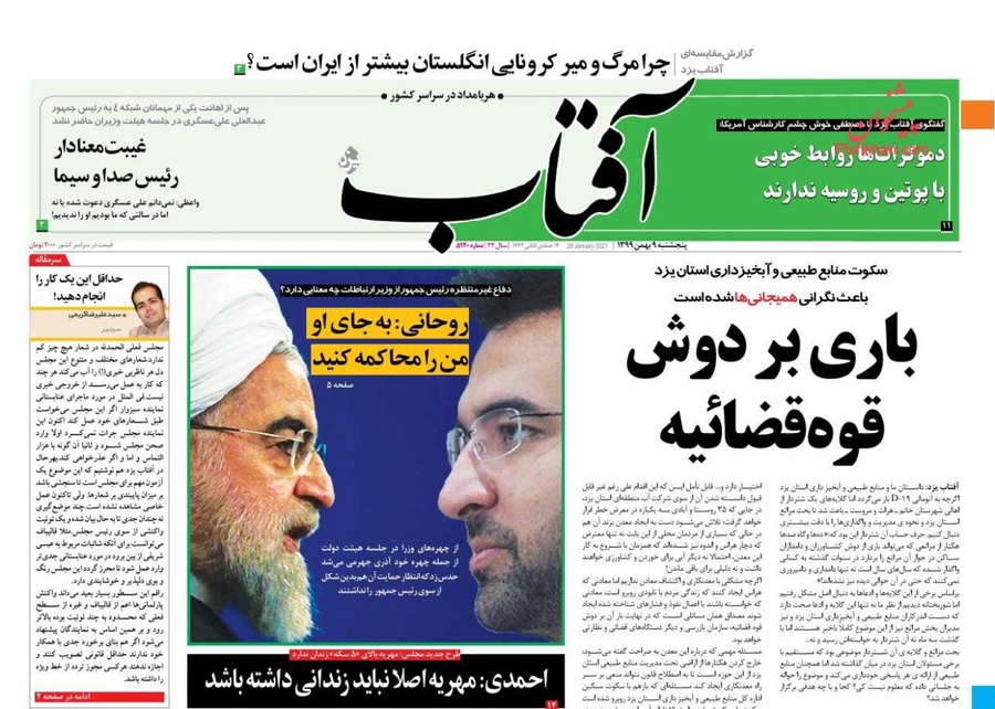دفاع رئیس جمهور از وزیر ارتباطات، دعوت نکردن از رئیس صداوسیما به جلسه هیات دولت و... از موضوعاتی است که در روزنامه های امروز به آن پرداخته شده است.