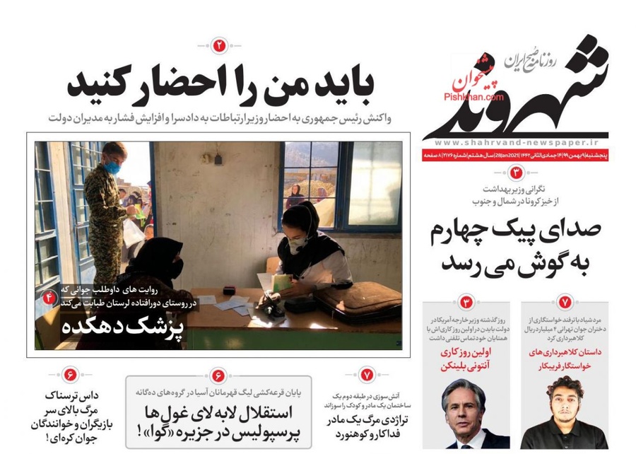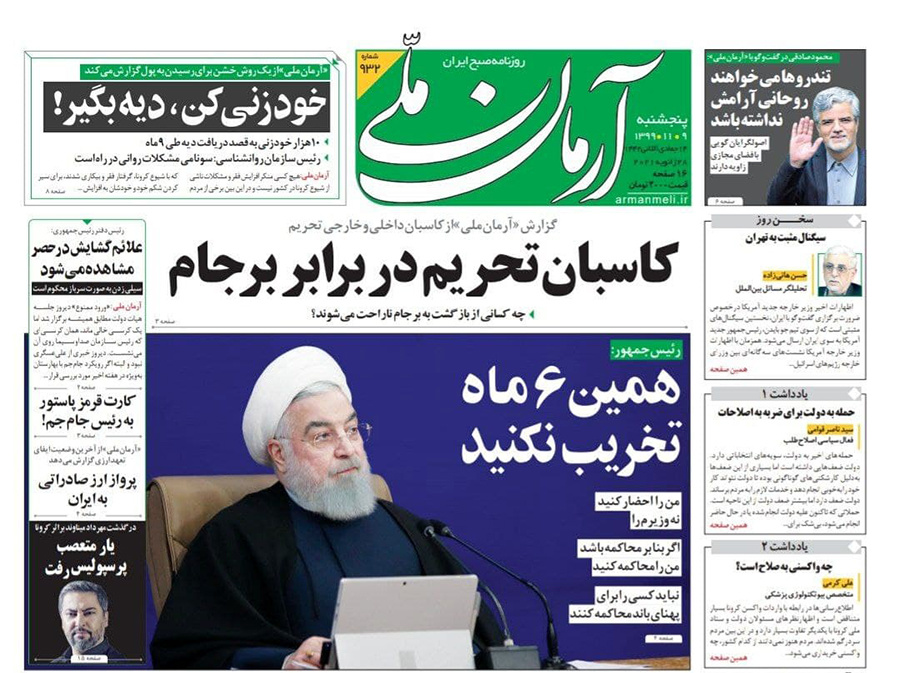 صفحه اول روزنامه ها پنجشنبه ۹ بهمن