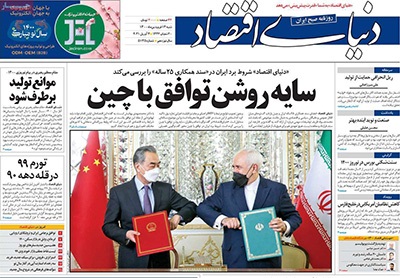 توافق ایران و چین مهمترین تیتر روزنامه ها در اولین روز انتشار در ۱۴ فروردين ۱۴۰۰ است.