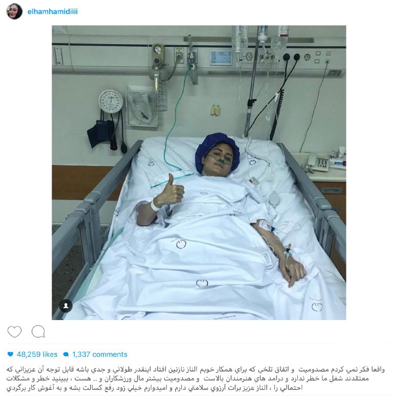 الهام حمیدی بازیگر سینما و تلویزیون به مصدومیت الناز شاکردوست واکنش نشان داد و نوشت: ببینید کار ما چه قدر سختی دارد.