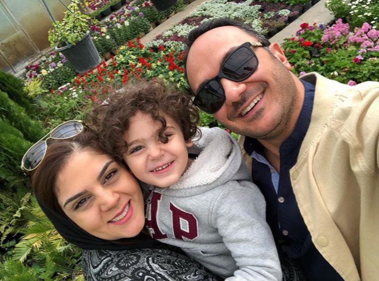 عکس زیر تصویری از احسان كرمی، گوینده، مجری رادیو و تلویزیون همراه همسر و پسرش است.