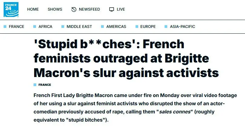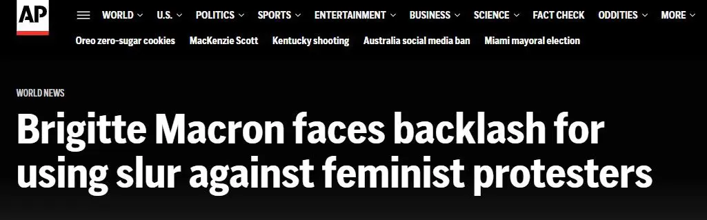خبرگزاری آمریکایی آسوشیتدپرس دراینباره نوشت: «برژیت مکرون به دلیل استفاده از الفاظ رکیک علیه معترضان فمینیست، با واکنشهای منفی روبروست.»