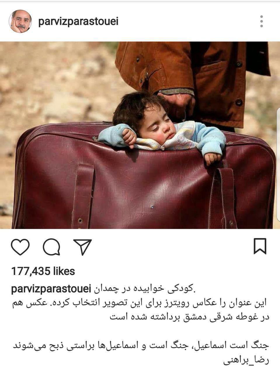 واکنش پرویز پرستویی به کودک خوابیده در چمدان + عکس