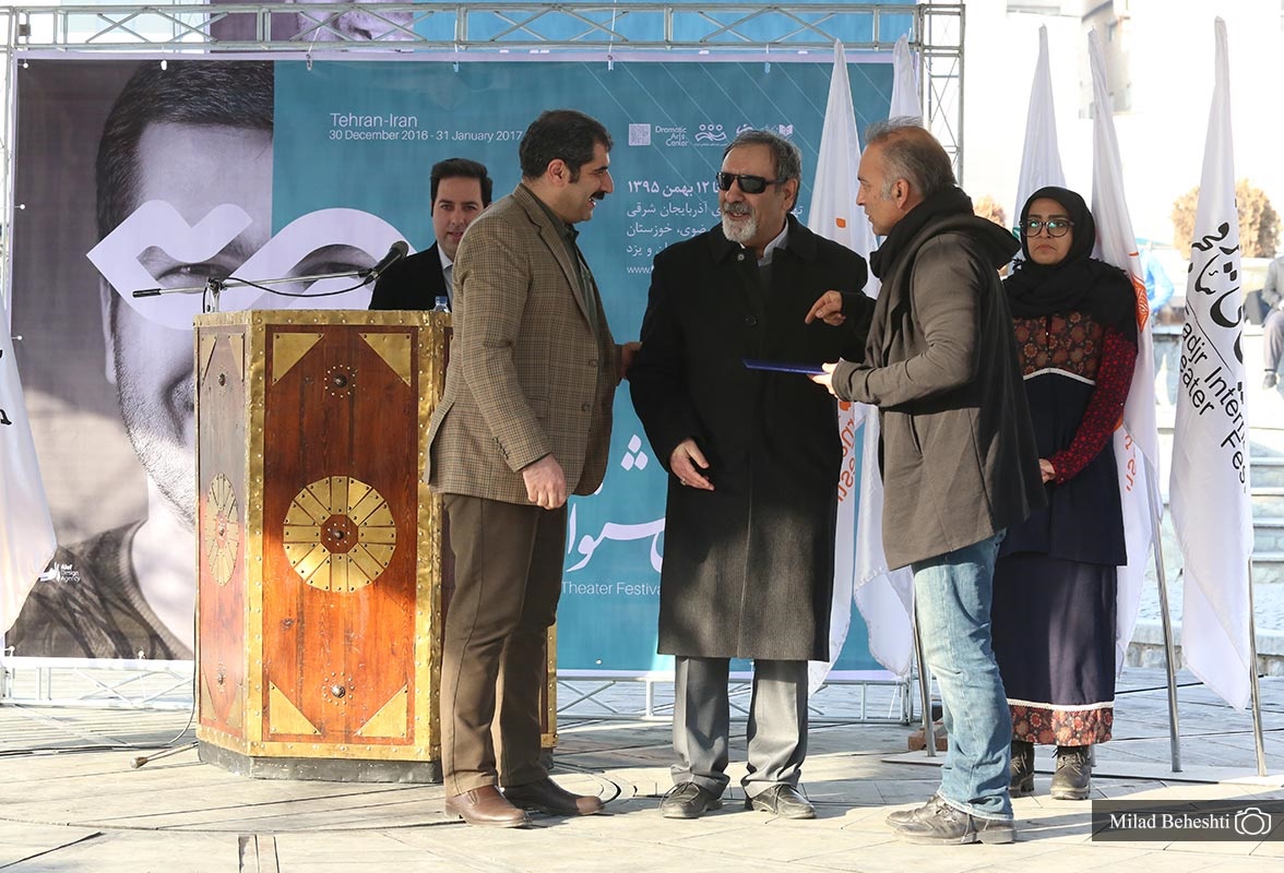 آذرنگ با بیاناینکه تمام قد مقابل جامعه نابینایان و ناشنوایان تعظیم میکند، گفت: «به کسانی که تئاتر هنوز برای آنها مفهوم دارد و هنوز زنده است، مراتب ارادت خود را تقدیم میکنم.»