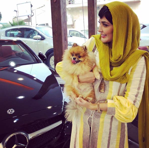«مریم معصومی» و سگش در یک نمایشگاه اتومبیل لوکس!