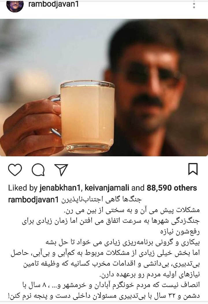 پست رامبد جوان در مورد وضعیت بد آب آشامیدنی آبادان و خرمشهر.