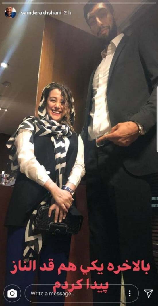 سام درخشانی با گذاشتن این استوری در اینستاگرامش با قد الناز حبیبی شوخی کرد.