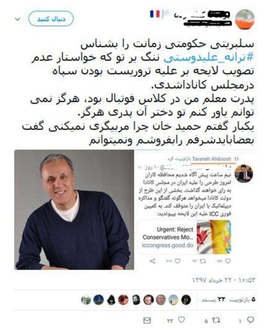 فحاشی ضدانقلاب به "ترانه علیدوستی"+عکس