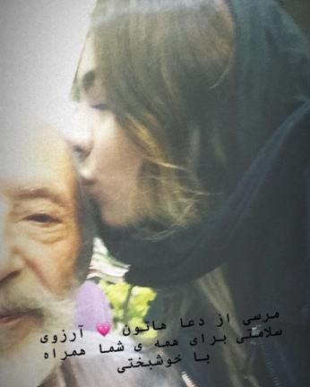 بوسه صحرا مشایخی نوه جمشید مشایخی بر صورت پدربزرگش! عکس