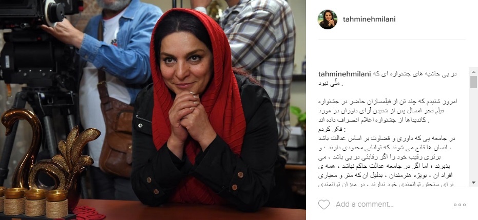 تهمینه میلانی در صفحه اینستاگرام خود نسبت به داوریهای جشنواره واکنش نشان داد.