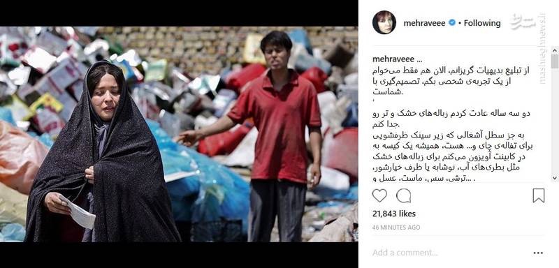 مهراوه شریفی‌نیا در اینستاگرامش نوشت: